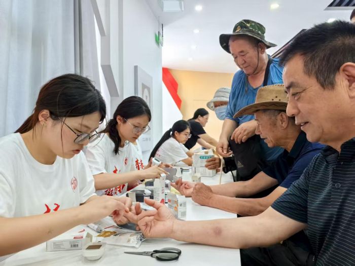 為幫助老年群體及時(shí)了解自身健康狀況,實(shí)踐團(tuán)開展血壓、血糖免費(fèi)檢測服務(wù);顒(dòng)現(xiàn)場,成員們細(xì)致為老人測量數(shù)據(jù),運(yùn)用專業(yè)知識(shí)解讀結(jié)果,在詢問健康狀況后,推薦并指導(dǎo)使用“江蘇數(shù)字農(nóng)家書屋”中的相關(guān)資源,如《中老年養(yǎng)生指南》《慢性病自我管理》等電子書籍與聽書內(nèi)容,鼓勵(lì)老人通過便捷閱讀獲取科學(xué)保健知識(shí),將“治未病”融入日常生活。義診桌旁書香縈繞,健康關(guān)懷與閱讀滋養(yǎng)相得益彰,讓老人們倍感溫暖。