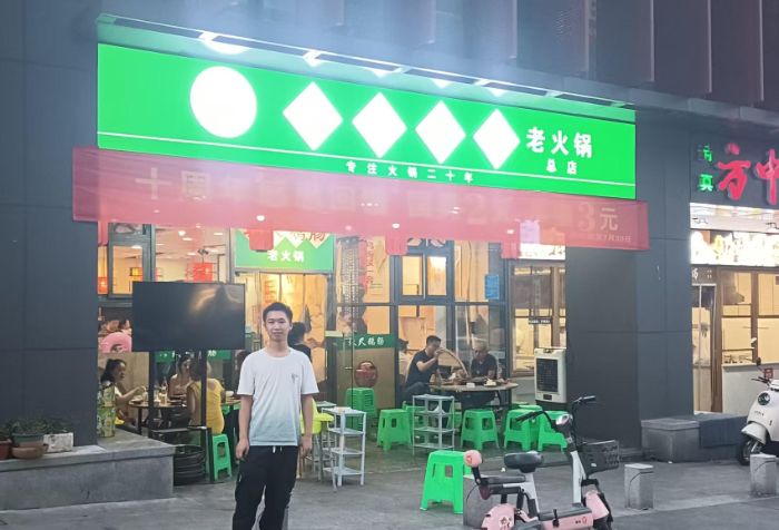 實(shí)踐團(tuán)成員官紫南與火鍋店的合影