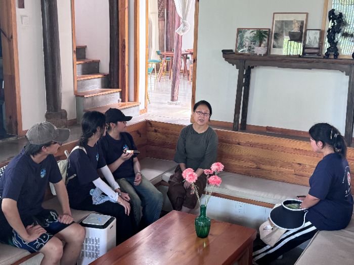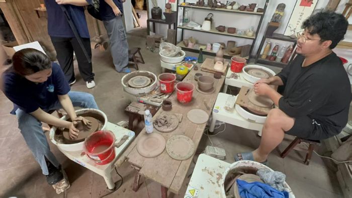 7月1日,實(shí)踐團(tuán)走訪了彩陶村和睦大院。由江西婺源遷建的百年古宅改建而成的民宿,作為浙江省首批文化主題民宿,其以“宋人四藝”(點(diǎn)茶、插花、掛畫(huà)、焚香)為核心特色,毗鄰的陶藝體驗(yàn)區(qū)也吸引了眾多研學(xué)團(tuán)隊(duì)。