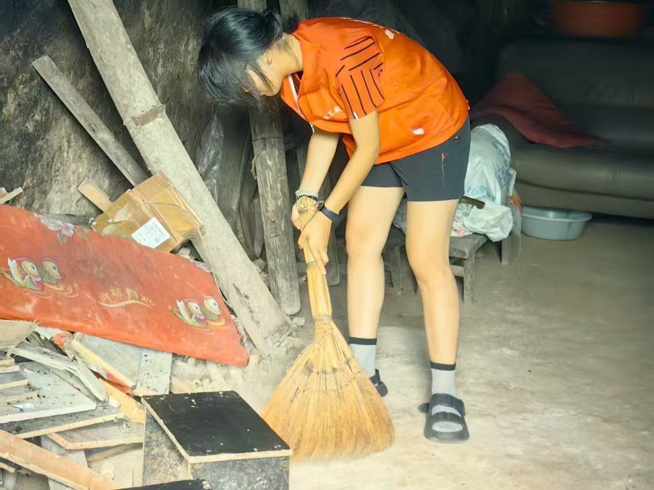 圖為團(tuán)隊(duì)成員為年邁的李奶奶打掃住處