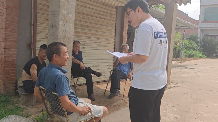 隨后,團隊深入選定鄉(xiāng)村,逐戶發(fā)放調查問卷,耐心向村民解釋問卷目的與填寫方法,以提高回收率與數(shù)據(jù)質量。針對不同年齡、學歷、數(shù)字使用習慣的村民,了解其對數(shù)字鄉(xiāng)村建設的認知、參與度及實際感受。在調研過程中,部分農(nóng)民對問卷中的專業(yè)術語理解困難,隊員們便改用方言和生活實例進行解釋;一些農(nóng)民因對調研目的不明確而有所顧慮,隊員們則通過耐心溝通打消其疑慮。團隊發(fā)現(xiàn)村中多為老年人,受教育水平大多為初中及以下。年輕農(nóng)民在數(shù)字技能掌握和網(wǎng)絡文化參與上表現(xiàn)更為積極,而老年群體則存在一定“數(shù)字鴻溝”。同時,數(shù)字基礎設施建設較好的村莊,農(nóng)民的文化活動參與度也普遍較高,精神面貌也更好。