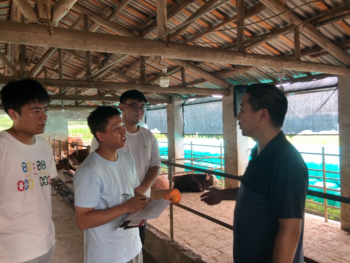 團隊成員調(diào)研養(yǎng)牛大戶(黃夢瑤 攝)