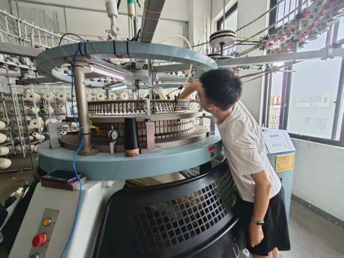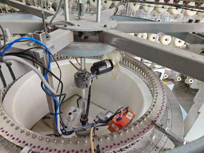 圖為疵布檢測(cè)設(shè)備在大圓機(jī)上的裝配圖 李仲勤攝
