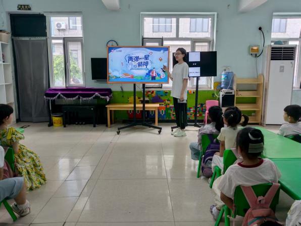 7月16日,實踐團成員奔赴河北省唐山市豐南區(qū)高各莊村朵朵幼兒園,開展了“兩彈一星”精神啟蒙活動。針對3-6歲的幼兒認知特點,團隊成員設(shè)計了簡單有趣的知識科普與互動游戲,在孩子們幼小的心靈中播撒下科學的種子。
