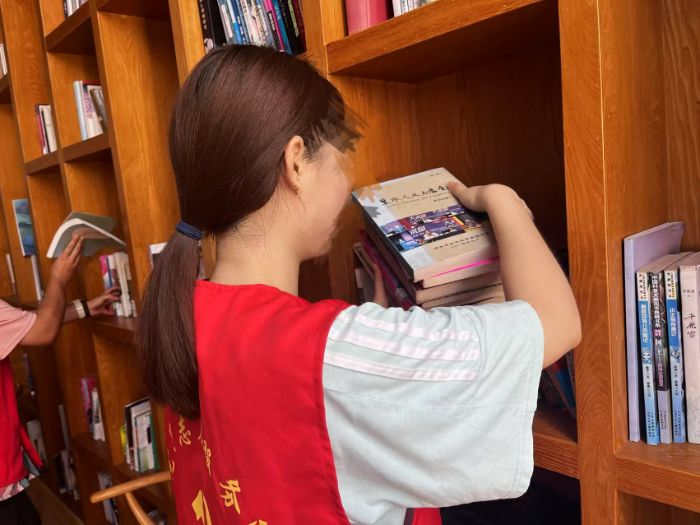 調(diào)研當(dāng)天,正是文化禮堂的“圖書整理日”,隊(duì)員們當(dāng)即加入村民志愿者的隊(duì)伍,一起給新到的書籍分類、貼標(biāo)簽、上架。“這些農(nóng)業(yè)技術(shù)書很有用!我們種了一輩子茶、桃,查了資料才知道還有那么多門道!”一位參與書籍整理的老奶奶告訴隊(duì)員們,她種了一輩子桃樹,去年通過(guò)書中的“疏花疏果”技術(shù),產(chǎn)量提高了三成。