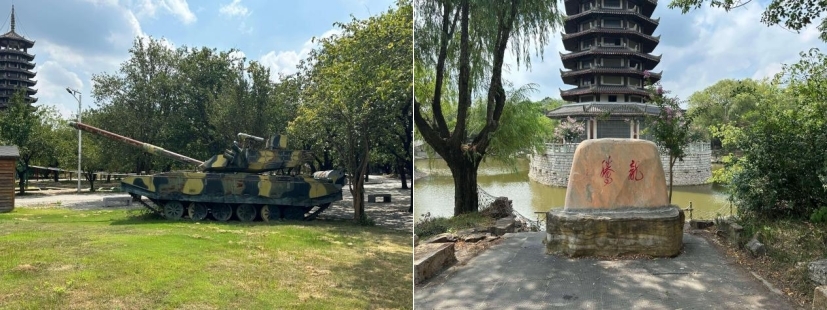 步入臥龍泉景區(qū),紅色印記與綠色生態(tài)交織的立體畫卷徐徐鋪展。作為運河支隊抗戰(zhàn)歷史的重要見證地,景區(qū)內(nèi)的紀念館、戰(zhàn)地工事等紅色遺存,在蔥郁林木與澄澈水域的環(huán)抱中更顯厚重。團隊成員駐足于銹跡斑斑的槍械、泛黃的戰(zhàn)地文書前,認真聆聽先輩們?yōu)槭刈o家園浴血抗爭的往事,深刻體悟其中蘊含的愛國主義精神與革命英雄主義氣概。而環(huán)繞其間的生態(tài)濕地、原生植被,以蓬勃的自然生命力托舉著紅色記憶,隊員們在徒步考察中細致記錄植被分布與景觀規(guī)劃,感受歷史莊嚴與自然生機的空間平衡,理解生態(tài)基底對紅色文化傳播的滋養(yǎng)作用。