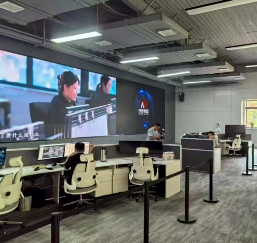 隨后,師生們參觀了科技園數(shù)字化工廠指揮中心——巨大的電子屏實(shí)時(shí)顯示著生產(chǎn)數(shù)據(jù),設(shè)備運(yùn)行狀態(tài)、產(chǎn)能進(jìn)度、物流調(diào)度等信息一目了然。工作人員介紹,指揮中心作為工廠的“大腦”,通過數(shù)據(jù)互聯(lián)互通實(shí)現(xiàn)全流程智能化管控。相鄰的“黑燈車間”更是展現(xiàn)了高度自動化的生產(chǎn)場景:無需人工值守,機(jī)械臂精準(zhǔn)作業(yè),AGV小車有序穿梭,從原料輸送到成品下線全程自動化,僅靠系統(tǒng)程序與傳感器協(xié)同運(yùn)轉(zhuǎn)。