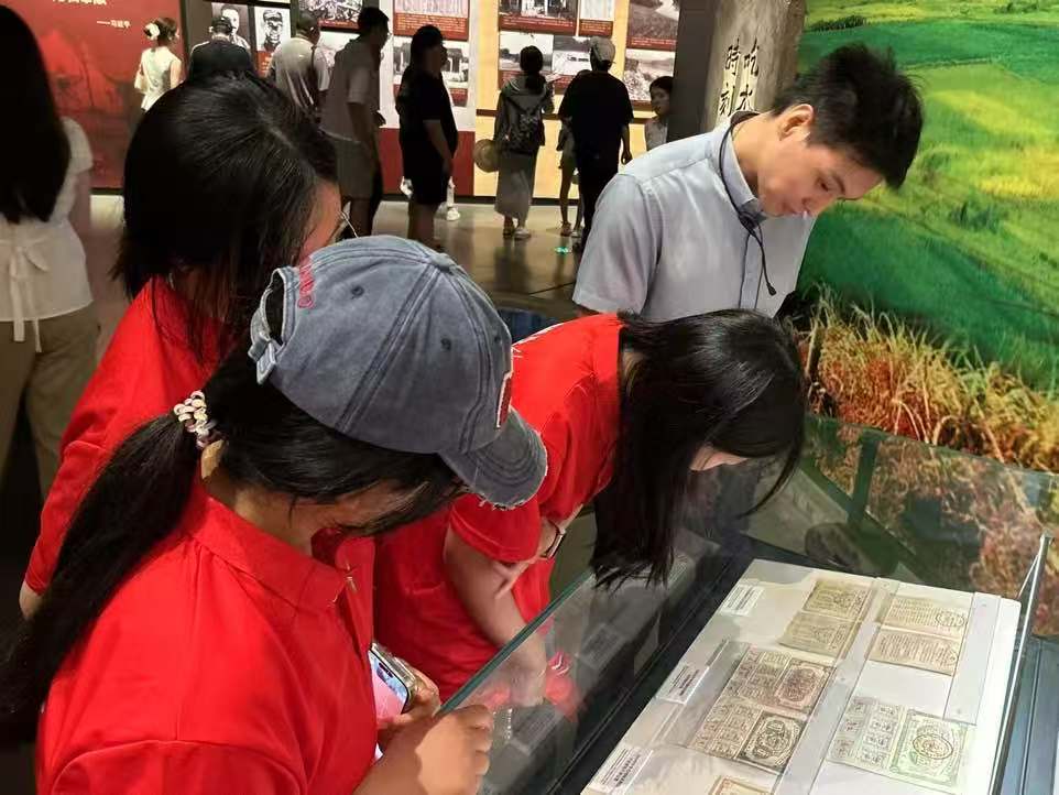 圖為調(diào)研團(tuán)隊(duì)成員參觀紅色金融票證。劉元竹供圖