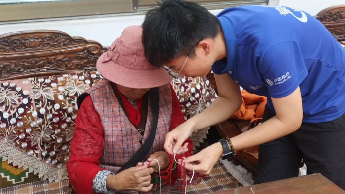 圖為團(tuán)第成員教學(xué)老人進(jìn)行繩結(jié)體驗(yàn) 林虹余通訊員攝