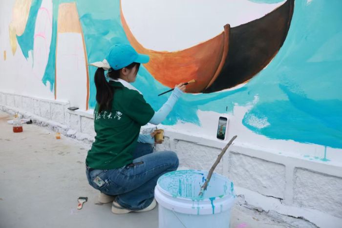 圖為隊員們進(jìn)行墻繪填色工作。魏佳 供圖