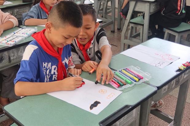 圖六 孩子們在紙上繪制情緒四宮格 林山豪攝