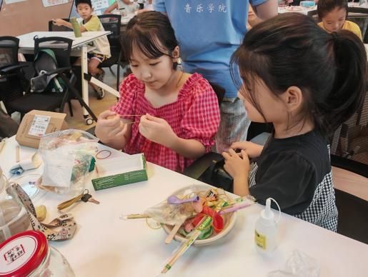 最后,實(shí)踐團(tuán)成員帶領(lǐng)孩子們利用日常生活中的可回收材料親手制作簡(jiǎn)易樂(lè)器。通過(guò)實(shí)踐理解垃圾分類(lèi)的價(jià)值,感悟“廢物利用”的創(chuàng)新思維;顒(dòng)中引導(dǎo)孩子將廢棄物品轉(zhuǎn)化為可發(fā)聲的環(huán)保打擊樂(lè)器或弦鳴樂(lè)器,讓環(huán)保行動(dòng)與音樂(lè)創(chuàng)造同步發(fā)生。