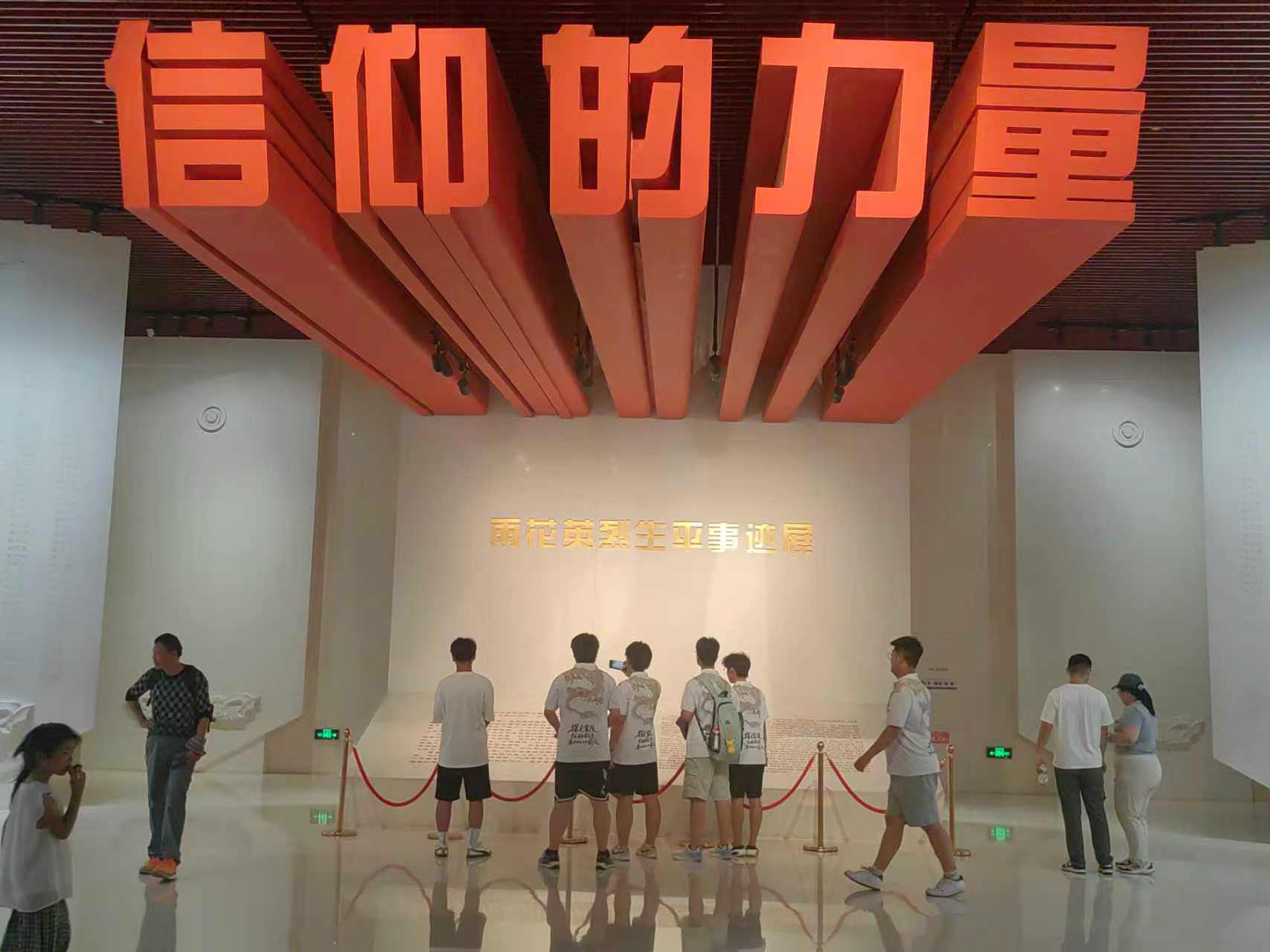 雨花臺烈士紀(jì)念館中,大廳巨型浮雕與穹頂設(shè)計莊嚴(yán)肅穆,“信仰的力量”展覽以四個歷史時期為主線,1000余件烈士遺物、450余幅照片串聯(lián)起179位英烈的故事。惲代英獄中《告青年書》手稿筆力剛勁,字里行間是對革命的忠誠;19歲烈士賀瑞麟的《死前日記》,23頁紙記錄著“就是死,也不能干孬種事”的鋼鐵意志;史硯芬血衣中取出的訣別信,“我的死是為著社會國家和人類”的誓言令人動容。在紀(jì)念碑前,隊員們默哀致敬,深切體會到“雨花英烈用青春與熱血,在紅脈中注入了最熾熱的信仰底色”。