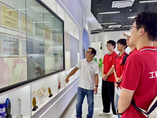 調研伊始,實踐隊在郭萬金老師的引導下,系統(tǒng)考察了埃夫特公司的發(fā)展歷程與榮譽成就。在專業(yè)講解中,隊員們重點參觀了模塊化展示的機器人技術矩陣展廳。從核心部件的精密設計,到協(xié)作機器人的柔性互動、噴涂與焊接機器人的高精度作業(yè),再到5G+協(xié)同機器人的智能互聯(lián)與小型桌面機器人的高效靈巧,一幅清晰的機器人技術應用全景圖徐徐展開。這些與“翼臂協(xié)凈”項目涉及的運動控制、環(huán)境感知、多機協(xié)作等關鍵技術密切相關的工業(yè)級解決方案,為團隊提供了寶貴的行業(yè)參照和技術驗證實例。 隊員們深刻感受到,前沿技術正從理論走向鮮活的工業(yè)實踐。