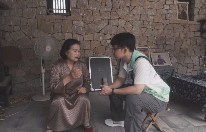 圖為與沂蒙山小調(diào)傳唱人宋守蓮老師對話