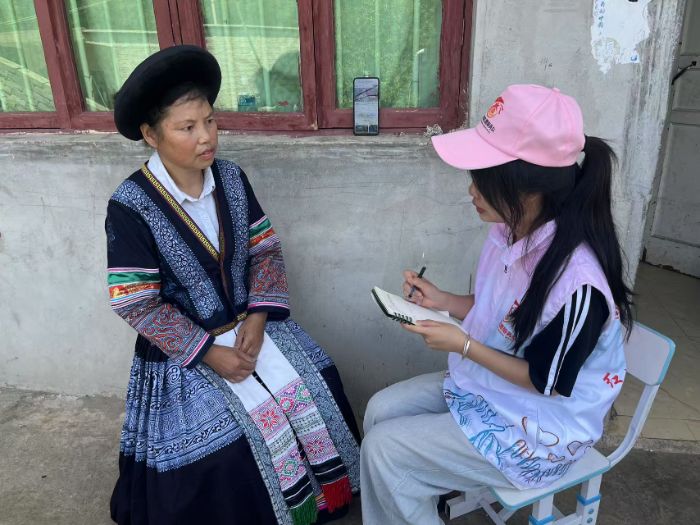 “家中苗語傳情,戶外普通話通意”——這是當(dāng)?shù)孛缱逋纳畛B(tài)。受訪者談及語言時,眼中總透著通透:普通話是年輕人闖蕩外界的“船槳”,助其務(wù)工就學(xué)、銜接現(xiàn)代生活;而苗語是刻在血脈里的“印記”,飯間閑談、節(jié)慶歌謠里,都是祖輩智慧的回響。隊員跟著學(xué)了“內(nèi)給咯”(謝謝)等基礎(chǔ)表達(dá),在村民的講解中才恍然:那些稱謂里藏著長幼有序的倫理,那些日常用語里凝著農(nóng)耕文明的積淀,語言從來都不只是交流工具,更是文化基因的“活載體”。