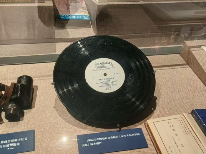 圖為長沙黨史館內(nèi)陳列的《中華人民共和國國歌》膠木唱片