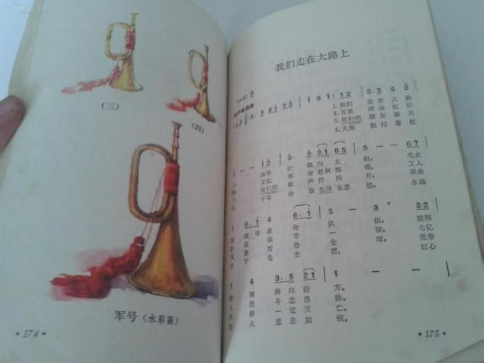 圖為中小學(xué)教材印的紅色音樂歌曲《我們走在大路上》