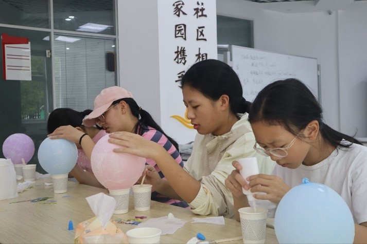 有幾位同學(xué)還巧妙地利用掉落的小花,在燈罩邊緣點綴出精致的裝飾,每一雙擺弄紙漿與花草的手,都在用心構(gòu)建著獨一無二的光影藝術(shù)品。