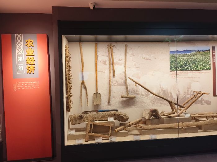 社會實踐團隊隨后前往東鄉(xiāng)族自治縣博物館進行參觀學習。館內(nèi)陳列了豐富多彩的歷史文物,包括傳統(tǒng)農(nóng)業(yè)生產(chǎn)工具、精美絢麗的民族服飾以及各類手工藝品。通過這些實物展品,團隊成員系統(tǒng)了解了東鄉(xiāng)族人民在長期生產(chǎn)生活中形成的獨特文化發(fā)展脈絡與藝術表現(xiàn)特征。從一件件厚重的農(nóng)耕器具、一針一線繡成的民族服飾和凝聚智慧的傳統(tǒng)工藝中,我們不僅讀懂了東鄉(xiāng)族的文化符號與審美語言,更深切感受到當?shù)馗髅褡逯g長期交往、團結(jié)互助、共同發(fā)展的歷史痕跡與文化融合的真實歷程。