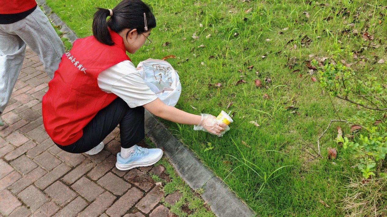 圖為實(shí)踐隊(duì)清理草坪垃圾。李詩彤 供圖