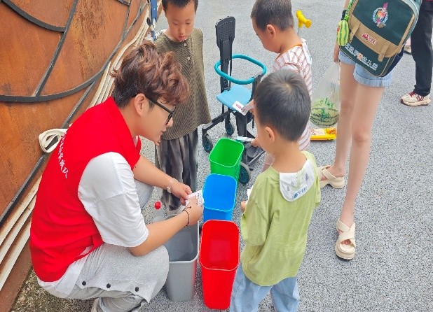 圖為團(tuán)隊(duì)成員講解垃圾分類