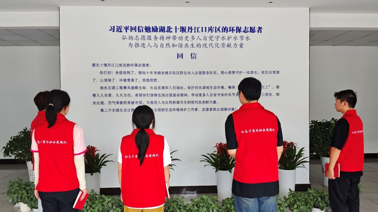 圖為實踐隊隊員觀看習(xí)近平給丹江口環(huán)保志愿者的回信