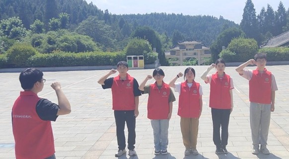 下午,在丹江口市烈士陵園,實踐隊懷著崇敬的心情,開展了一系列紀念活動。隊員們整齊列隊,莊嚴肅立,齊聲高唱紅歌《三大紀律八項注意》,嘹亮的歌聲在陵園上空回蕩,表達著對革命先烈的深切緬懷與崇高敬意。