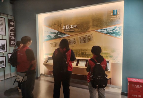 一幅幅照片記錄了工程建設者們戰(zhàn)天斗地、不畏艱難的奮斗場景,他們離開家鄉(xiāng),在陌生的土地上克服重重困難,為南水北調(diào)工程的順利推進奉獻青春與熱血。庫區(qū)移民的相關展示更是讓隊員們動容,為了確保“一泓清水永續(xù)北上”,庫區(qū)百姓舍小家為大家,毅然舍棄世代居住的家園,搬到陌生的地方重新開始生活。他們用實際行動詮釋著對國家和人民的責任與擔當,成為守護這一庫碧水的忠誠衛(wèi)士。