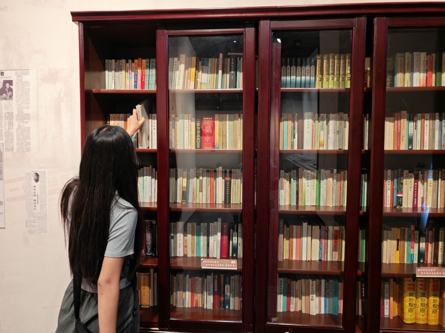 “大家看這組書柜的木紋,雖歷經(jīng)數(shù)十年,卻依然能感受到它承載的厚重歲月 —— 這里陳列的 300 余冊書籍、手稿,都是臧克家先生精心收藏并捐贈的珍貴財富。” 伴隨著紀念館講解員的介紹,實踐隊隊員們的目光聚焦在展廳中央的深棕色書柜上。“臧克家先生捐贈的不僅是書籍,更是精神火種。” 隊員李同學(xué)感慨道,“作為山大護理學(xué)子,我們要像先生一樣,將‘服務(wù)社會、關(guān)愛生命’的理念融入專業(yè)學(xué)習(xí),以‘燭光’之力傳承教育初心。