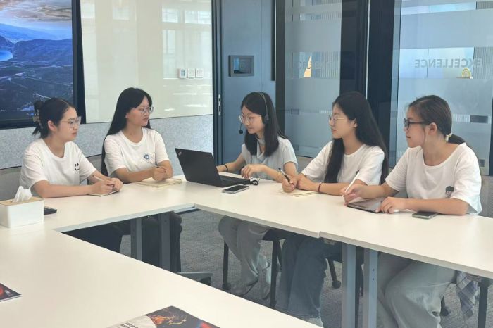 (配圖1:實踐團成員圍坐學(xué)習企業(yè)文化。潘秀慧 供圖)