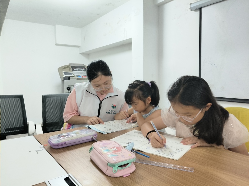 課業(yè)輔導(dǎo)與趣味活動(dòng),是實(shí)踐隊(duì)為孩子們打造的“成長(zhǎng)能量站”。為激發(fā)學(xué)習(xí)動(dòng)力,隊(duì)員們獨(dú)創(chuàng)“積分兌換制”:完成作業(yè)可換取游戲時(shí)間,積分越高,下午的“自由活動(dòng)時(shí)間”越長(zhǎng)。這一招讓原本對(duì)作業(yè)“敬而遠(yuǎn)之”的孩子們主動(dòng)翻開(kāi)書本,甚至互相討論難題。對(duì)于學(xué)習(xí)吃力的孩子,隊(duì)員們則開(kāi)啟“一對(duì)一專屬時(shí)間”,利用課間、午休耐心輔導(dǎo),確保不掉隊(duì)。