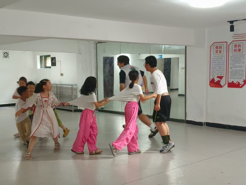 圖為實(shí)踐隊(duì)員與兒童玩耍