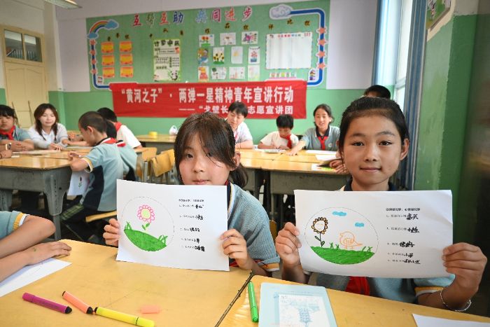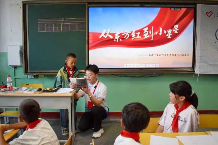 在鎖南民族小學(xué),“七彩云朵”團(tuán)隊(duì)精心打造“童夢(mèng)彩翼”暑期成長營,重點(diǎn)服務(wù)東鄉(xiāng)留守兒童。團(tuán)隊(duì)通過“色彩心情圈”、對(duì)稱知識(shí)學(xué)習(xí)等趣味心理互動(dòng),拉近與孩子們的距離,在關(guān)懷與教育中啟迪童心,厚植家國情懷。“星火傳承”計(jì)劃通過主題宣講、互動(dòng)游戲與心理繪畫,生動(dòng)講述“兩彈一星”元?jiǎng)资论E,深化青少年愛國情懷與民族自豪感。“語翼振鄉(xiāng)”行動(dòng)則聚焦語言能力提升,利用繞口令比賽、“方言工坊”、“蘿卜蹲”等游戲,巧妙破解語言關(guān)隘,有效提升了孩子們的普通話應(yīng)用能力。團(tuán)隊(duì)成員還參觀了校史館,感悟百年民族教育歷程和鄉(xiāng)村教育工作者扎根奉獻(xiàn)的“螢火蟲精神”。