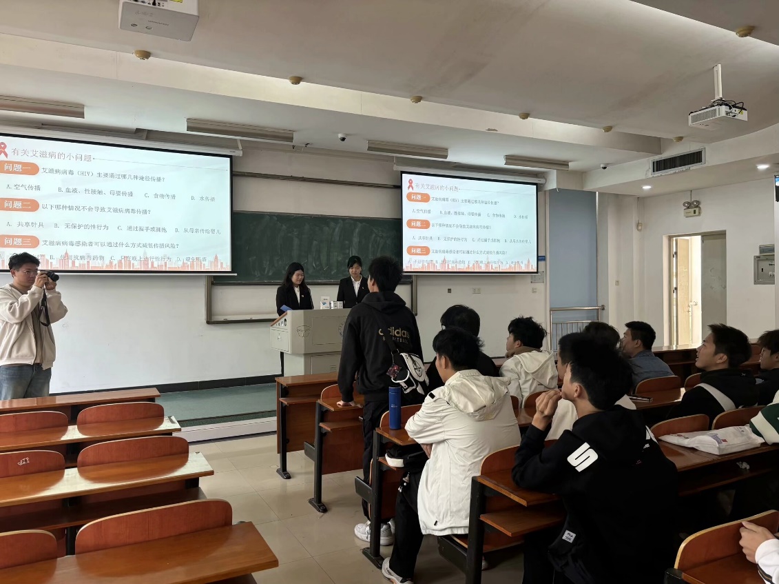 首先,許安琪同學(xué)通過播放一個有關(guān)艾滋病的宣傳視頻,使同學(xué)們對于艾滋病如何傳播及如何預(yù)防的知識有了初步的認識。接著,許安琪同學(xué)從客觀科學(xué)的角度出發(fā),全面講解了艾滋病對于患者個人及家庭、社會的負面影響。同時,她立足于大學(xué)生身份的特殊性,強調(diào)性傳播、血液傳播為艾滋病威脅大學(xué)生的重要途徑。隨后,她深入講解了預(yù)防艾滋病的方法以及如何正確對待艾滋病。為調(diào)動現(xiàn)場聽講氛圍,宣講團準備了艾滋病知識問答的互動環(huán)節(jié),同學(xué)們踴躍參與,回答正確率高,進一步提高了宣講效果。