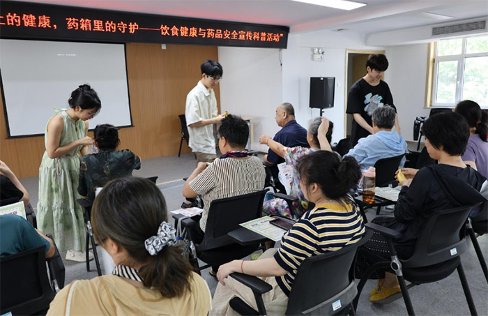 2025年8月30日,宣講當(dāng)日,隊(duì)員們清晨即采購健康小禮品,于下午準(zhǔn)時抵達(dá)社區(qū)活動室,受到居民熱情歡迎,F(xiàn)場通過PPT講解、傳單發(fā)放、實(shí)物對比和互動答疑等多種形式,圍繞飲食與用藥安全等現(xiàn)實(shí)問題開展科普。在互動答疑環(huán)節(jié),居民們踴躍提問,圍繞“高血壓該少吃哪些調(diào)味品”“降糖藥和保健品能否同服”等生活中經(jīng)常遇到的實(shí)際問題與隊(duì)員們深入交流。現(xiàn)場氣氛熱烈,充滿了溫馨與信任。隊(duì)員們耐心傾聽、細(xì)致解答,用通俗易懂的語言化解一個個健康疑惑,真正實(shí)現(xiàn)了醫(yī)學(xué)知識從課堂到社區(qū)、從理論到實(shí)踐的暖心傳遞。