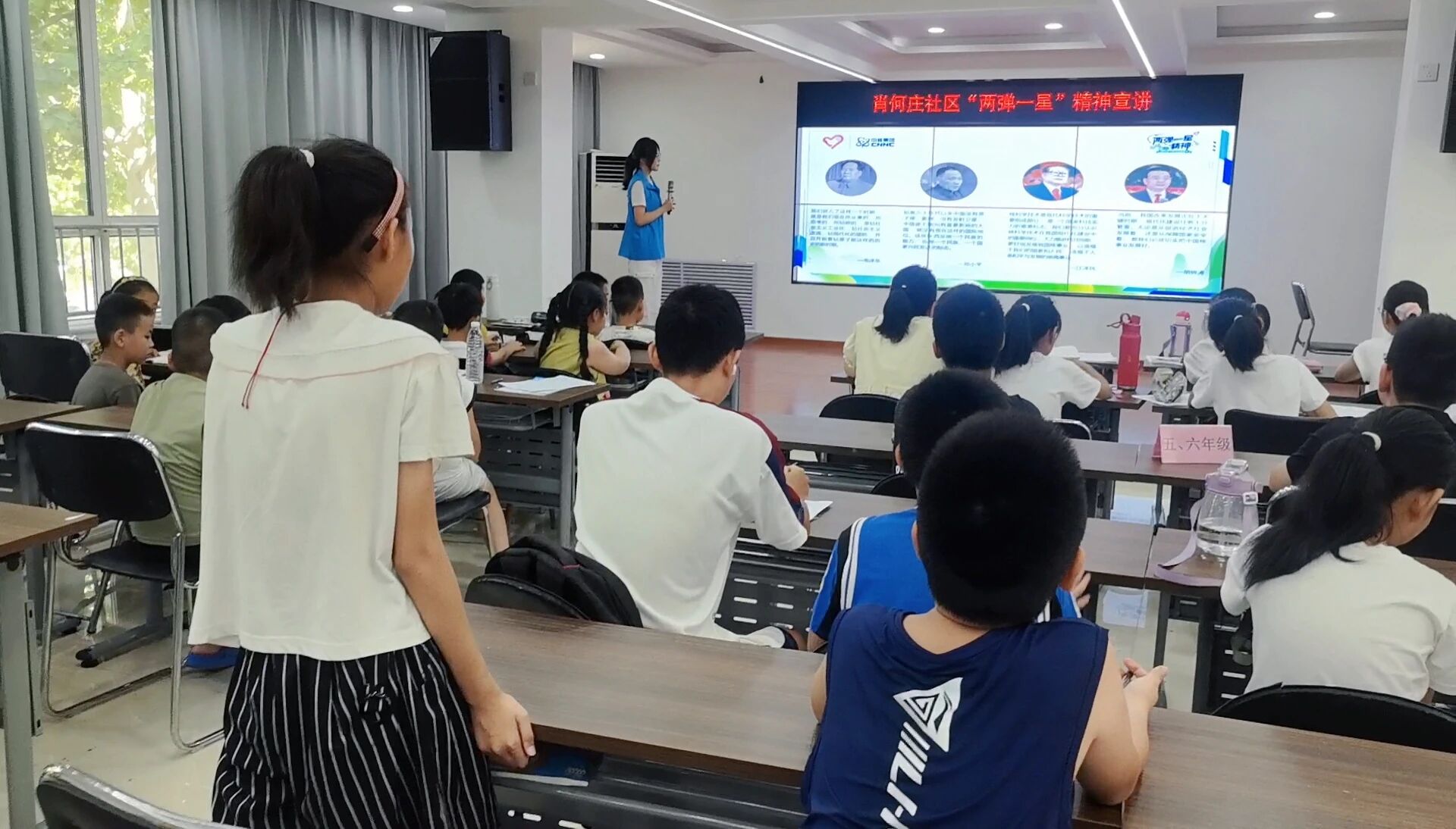 宣講過程中,志愿者首先通過一段視頻向青少年展示“兩彈一星”事業(yè)發(fā)展的艱辛歷程,隨后用通俗易懂的語言講述新中國成立初期面臨的種種困難,再到科研人員們?nèi)绾慰朔刂靥魬?zhàn),最后成功研制出原子彈、氫彈和人造衛(wèi)星。志愿者還提到為國家機(jī)密而隱性埋名多年的鄧稼先、在飛機(jī)失事時(shí)用生命守護(hù)機(jī)密文件的郭永懷以及在艱苦環(huán)境中默默堅(jiān)持研究的于敏?蒲腥藛T在困境中堅(jiān)持國家利益至上、默默奉獻(xiàn)的精神,讓青少年眼中閃爍著光芒。