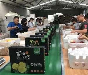 圖 3團隊成員參觀標準化生產基地 圖 4蒙陰蜜桃加工流水線
