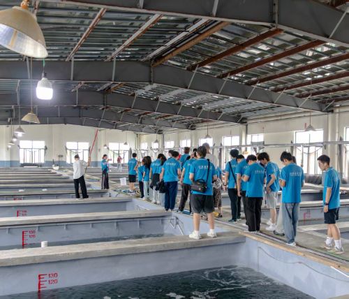 隨后,團隊來到海洋源水產(chǎn)開發(fā)有限公司育苗基地。在戴主任的引導下,師生們近距離觀察了黑鯛、半滑舌鰨、黃姑魚等特色魚種的育苗過程。育苗池中魚苗歡快游動的場景,讓同學們切身感受到海洋生物技術(shù)的魅力。同學們感嘆:“從魚卵到成魚的培育過程令人驚嘆,這讓我們對海洋養(yǎng)殖產(chǎn)業(yè)有了更深刻的認識。”