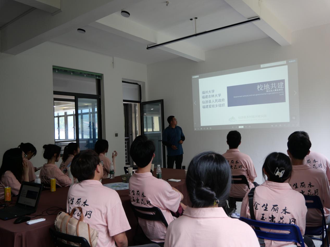 第一站,實踐隊來到了位于莆田市仙游縣朗橋村的鄉(xiāng)村振興研究院。該鄉(xiāng)村振興研究院由國家級三農(nóng)專家溫鐵軍團隊運作,以政策研究、發(fā)展規(guī)劃、人才培育、技能培訓(xùn)為核心,實現(xiàn)創(chuàng)新資源導(dǎo)入、校地共建與品牌孵化一體化服務(wù)。