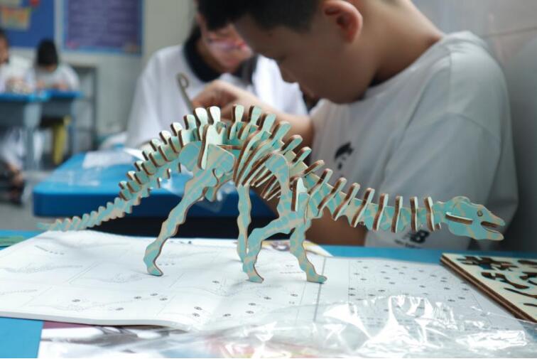圖為小朋友拼裝的恐龍模型 葉芳菲 攝