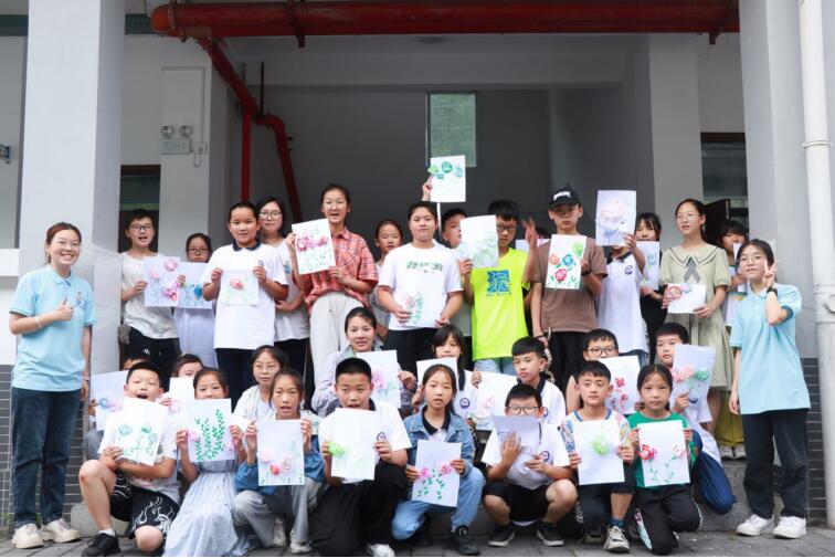 在課堂尾聲,由同學(xué)們上臺展示了他們所做的小花叢,漂亮精巧、認(rèn)真細(xì)致。每一個同學(xué)都在用心用情去完成自己的小花叢,將自己的豐富想象力與創(chuàng)造力付諸于這一幅幅小花叢中。最后,同學(xué)們帶著自己的作品與志愿者們進(jìn)行了合影留戀。