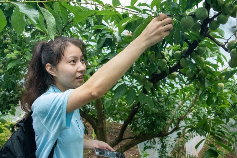 圖為幕后志愿者們正在采摘李子 夏毓晗 攝