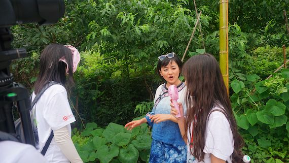 圖為團隊成員訪談蠟染世家李女士 黃擷亦 攝