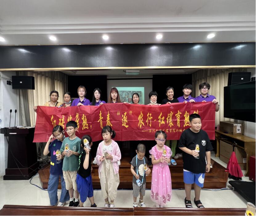 (圖為6月26日“紅磚筑常熟,青春‘逐’農(nóng)行——紅壤育熟科”成員趙延斌在社區(qū)中心宣講結(jié)束后與小朋友和家長們的合影。季文杰供圖)