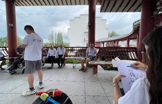 團(tuán)隊中的美術(shù)專業(yè)學(xué)生發(fā)揮特長,瞄準(zhǔn)老人們的關(guān)鍵外貌特征,繪制出一幅幅栩栩如生的人物肖像,據(jù)工作人員介紹,這是老人們第一次參與這樣的活動,因此都感到十分新奇有趣,繪畫期間,團(tuán)隊中的聲樂生們與老人親切交談,開設(shè)“點歌”環(huán)節(jié),獻(xiàn)上《女駙馬》《我的祖國》《紅燈記》《沙家浜》等老人們想聽的曲目,與他們一起重溫屬于他們青春時光里的歲月金聲。老人們邊聽曲,邊賞畫,歡聲笑語不斷。