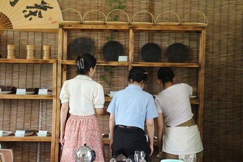 圖3為實(shí)踐團(tuán)成員參觀茶藝室成果展示墻