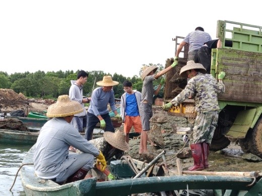 圖3 珠農(nóng)開展接力育珠,轉(zhuǎn)移育珠貝