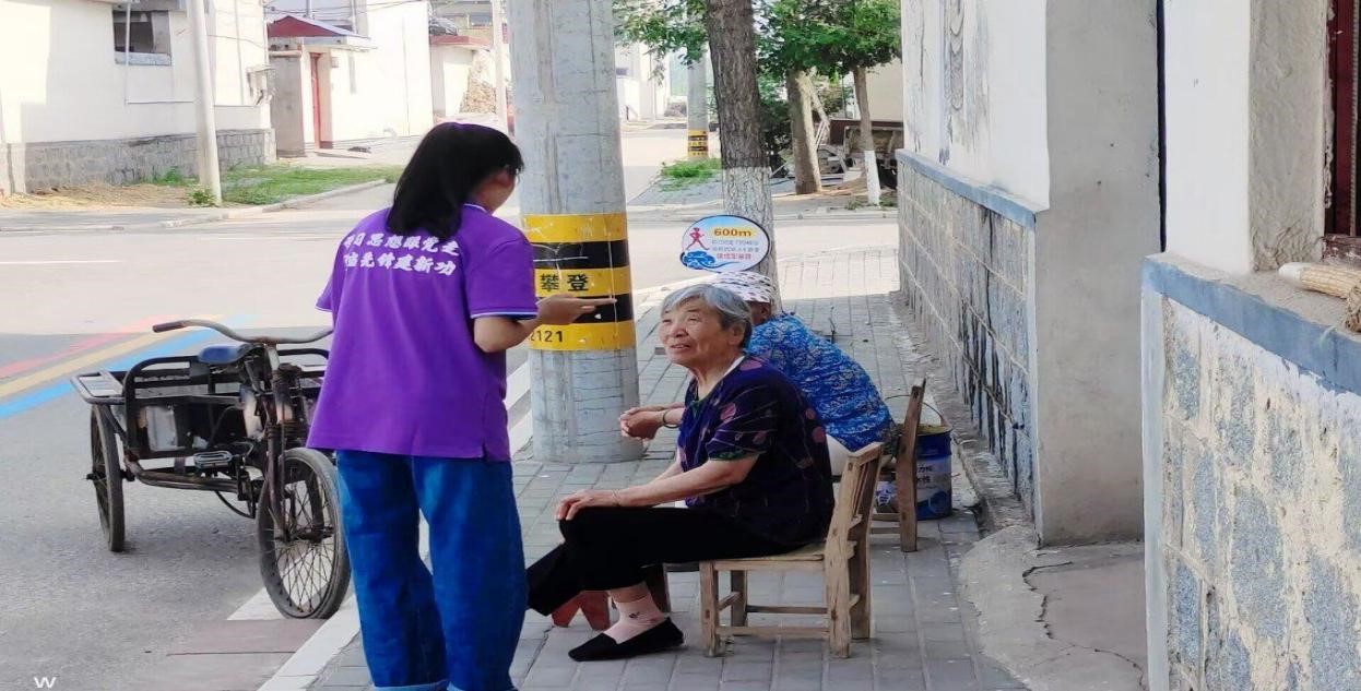 (圖為6月28日 “望來路,向新程”暑期社會(huì)實(shí)踐小隊(duì)團(tuán)隊(duì)成員吳憂采訪當(dāng)?shù)卮迕。?br />