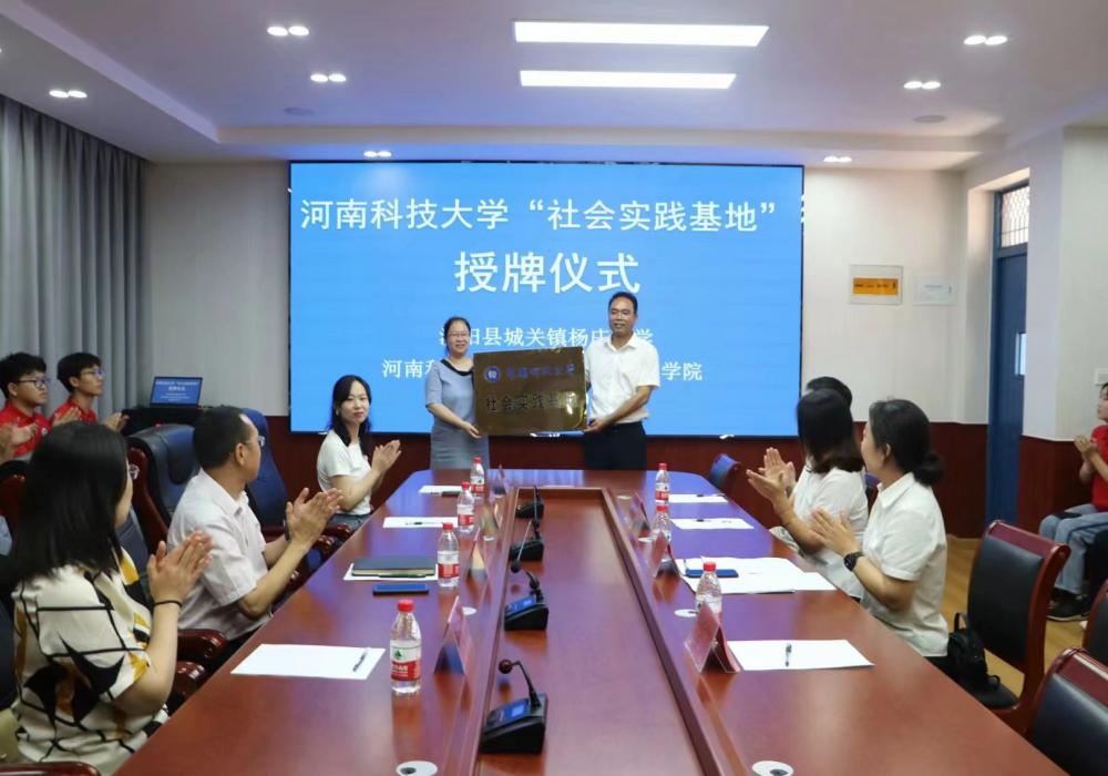 在楊莊小學(xué)會議室,舉行了河南科技大學(xué)食品與生物工程學(xué)院大學(xué)生社會實踐基地授牌儀式。河南科技大學(xué)食品與生物工程學(xué)院領(lǐng)導(dǎo)與汝陽縣城關(guān)鎮(zhèn)黨委副書記劉佳、汝陽縣城關(guān)鎮(zhèn)楊莊小學(xué)校長范紅賓以及實踐隊的指導(dǎo)老師和社會實踐隊全體成員參加授牌儀式。校領(lǐng)導(dǎo)代表表示將為社會實踐團(tuán)隊提供的支持與幫助,并叮囑社會實踐團(tuán)隊師生在活動中注意安全,及時記錄總結(jié)實踐內(nèi)容,進(jìn)一步夯實實踐成果。